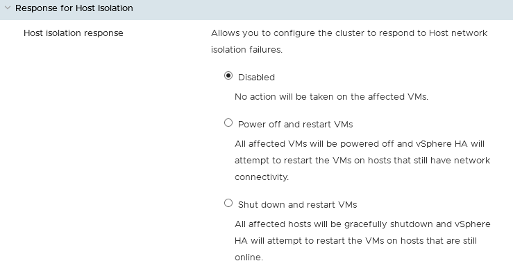 • All affected hosts will be gracefully shut down and vSphere HA will attempt to restart the VMs on hosts that are still online.