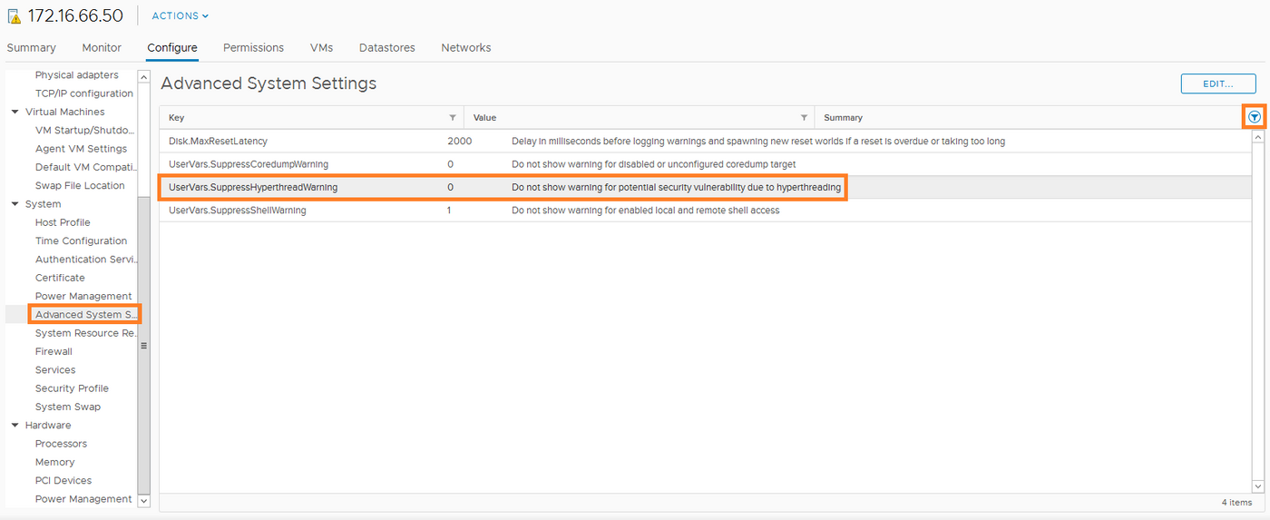 Les actions décrivent uniquement comment désactiver l'hyperthreading sur vos hôtes ESXi. Cependant, la faille L1TF nécesitant l'hyperthreading pour fonctionner, sa désactivation protège votre infrastructure de l'exploitation de cette vulnérabilité.